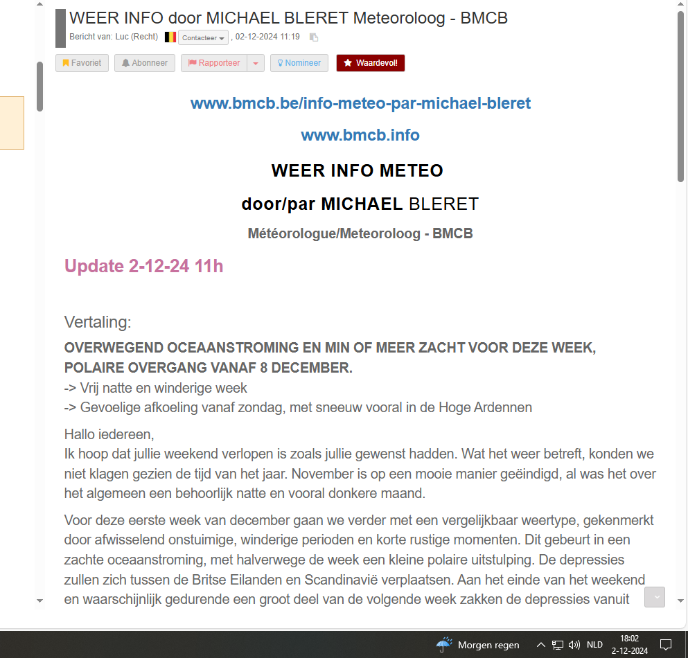 Re: WEER INFO door MICHAEL BLERET Meteoroloog - BMCB