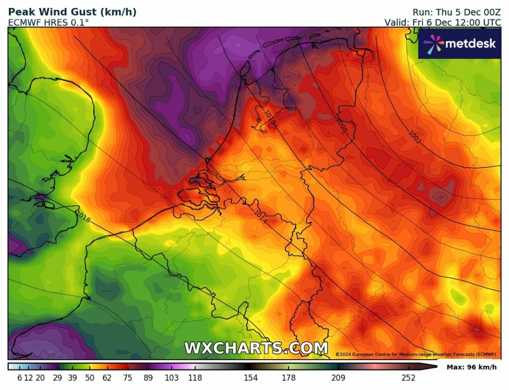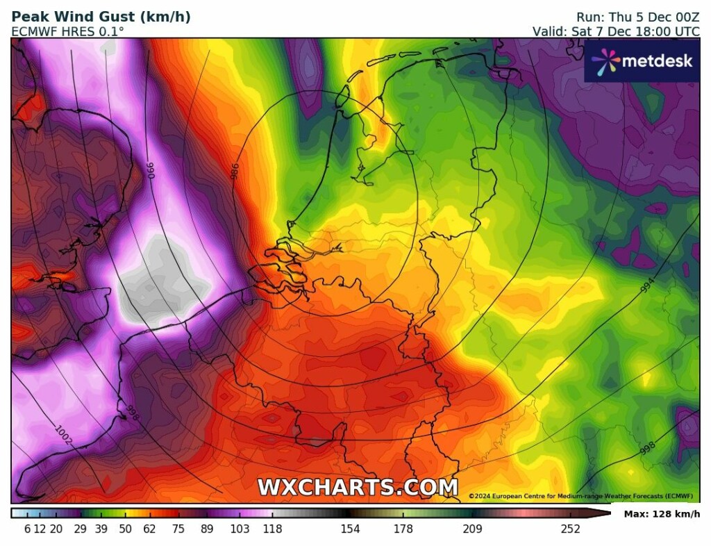 morgen iets voor het noord(westen) van Nederland. Maar vooral zaterdag voor de Vlaamse kust, mogelijk storm. het traject van het laag blijft wat onzeker, kan groot verschil maken in plaats en windsnelheid.