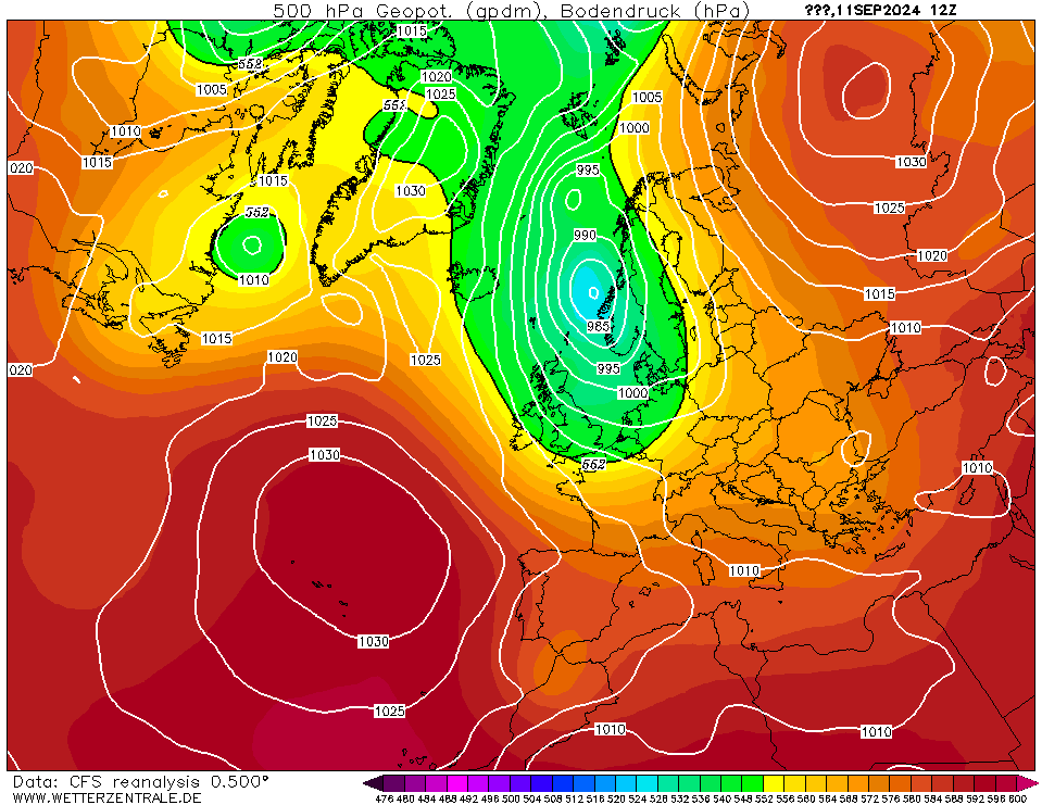 Kan je Boris daar echt aan relateren? Of moet je meerdere plaagstootjes zien om een verband te kunnen leggen? Net zoals je een Spanje watersnoodramp niet direct kan toeschrijven aan klimaatverandering.Boris vond ik wel heel duidelijk, met de hogedruk west op de oceaan en de uitzakking vanaf IJsland, waar het al maanden te koud was voor de tijd van het jaar. Dana heb ik bewust niet genoemd, hoewel de kou die in de bovenlucht hieraan verbonden was ook vanuit het hoge noorden kwam, de zuidpunt van Groenland deze keer. Een kanteling van de westcirculatie, zie ook mijn antwoord hieronder, is debet aan dit soort excessen. Nu de opwarming in het zuiden doorgaat en als de afkoeling bij IJsland doorzet, wordt de atmosfeer gevoeliger hiervoor.