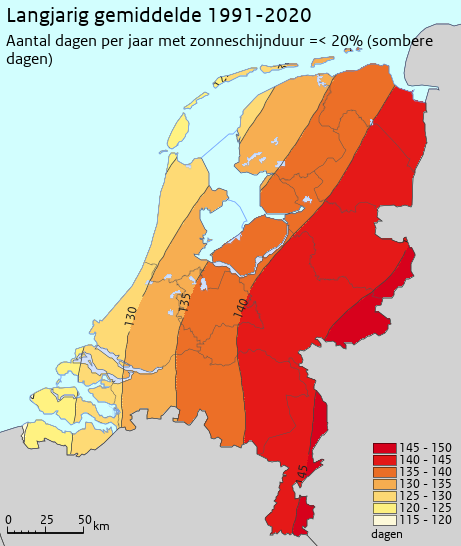 Dat toont de klimatologie ook mooi aan. Sombere dagen komen het meest voor, gevolgd door dagen met af en toe zon. Wat rest is een minderheid aan zonnige dagen en een nog kleinere minderheid met zeer zonnige dagen. Met andere woorden we hebben gewoon een prachtig klimaat dat van zichzelf behoorlijk somber is.