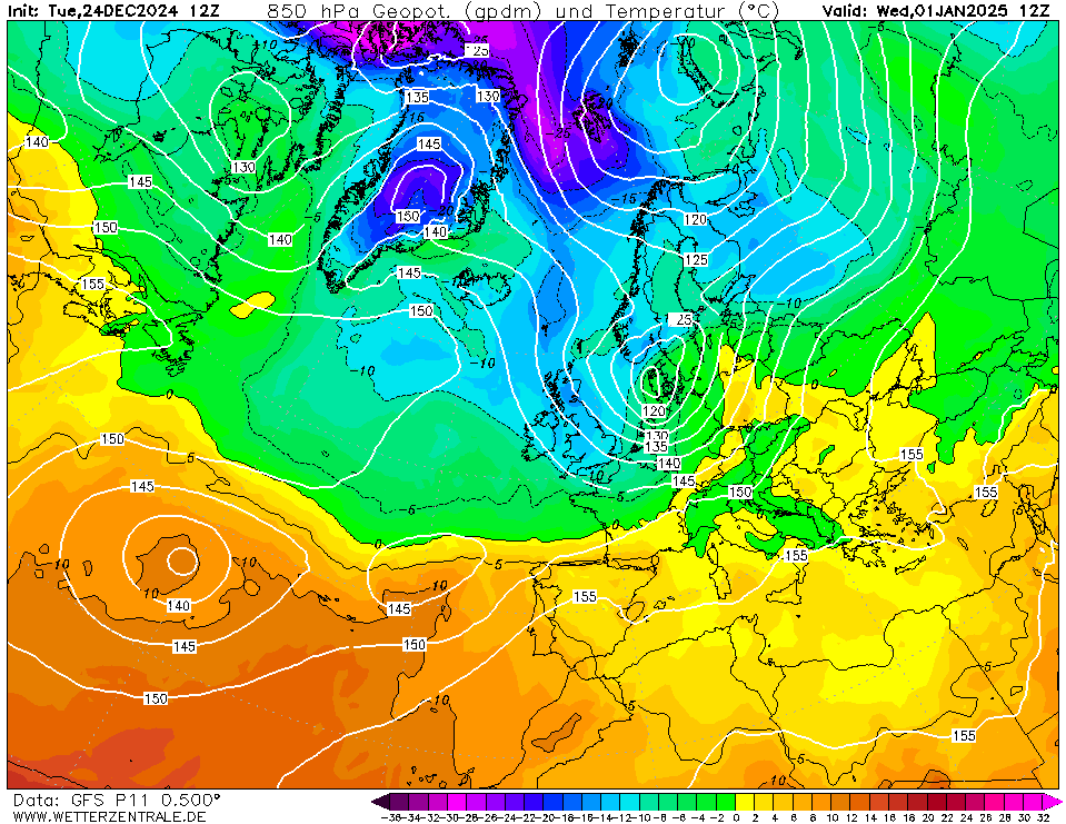 GFS-oper 12Z. Tot nieuwjaar somber en zacht. Meest droog