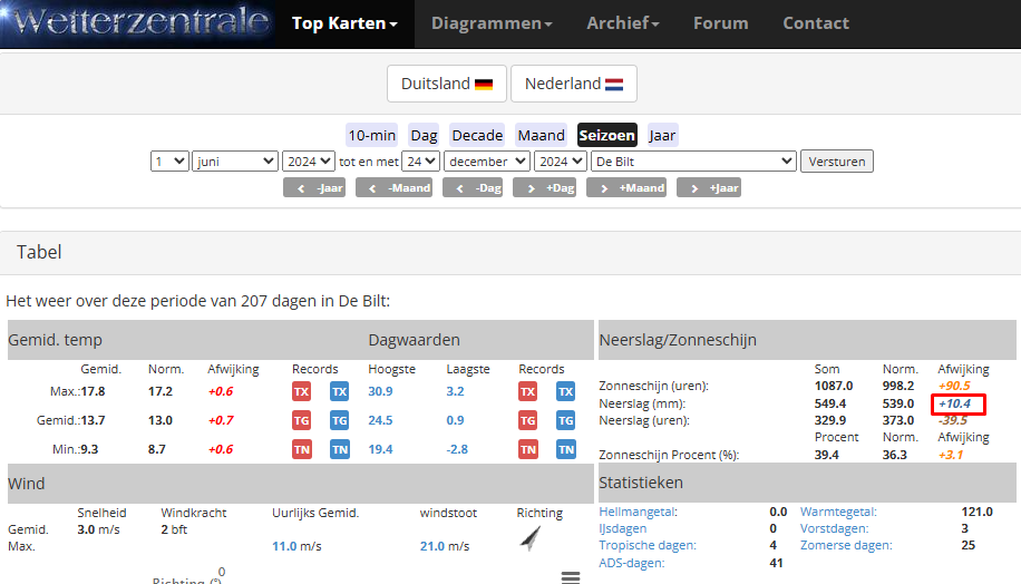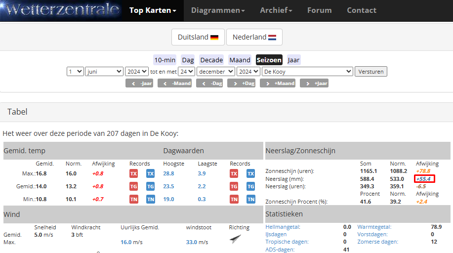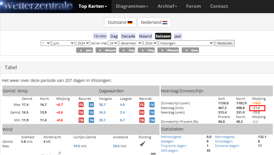 Dat van de normale neerslag de afgelopen 7 maanden geldt enkel voor Vlissingen en De Bilt, binnen de LH5 stations. P13 zijn geen gegevens van te vinden, buiten de ruwe dagwaarden in een ZIP bestand.