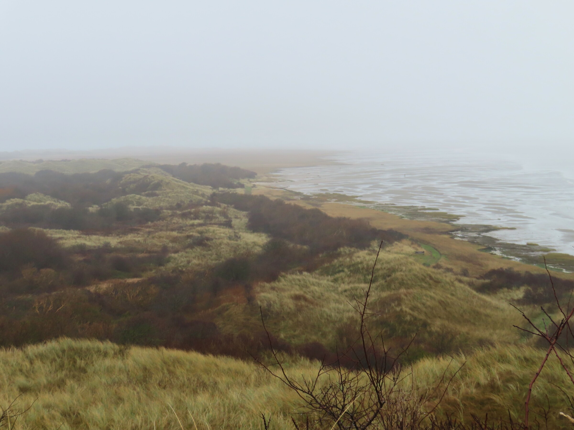 De hele ochtend dichte mist gehad en vanmiddag kilometers zicht met lichte motregen, 8C.