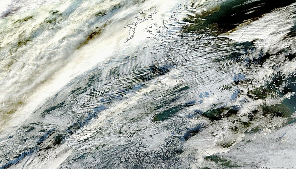 Op grote schaal onnatuurlijke bewolking ten westen van Frankrijk