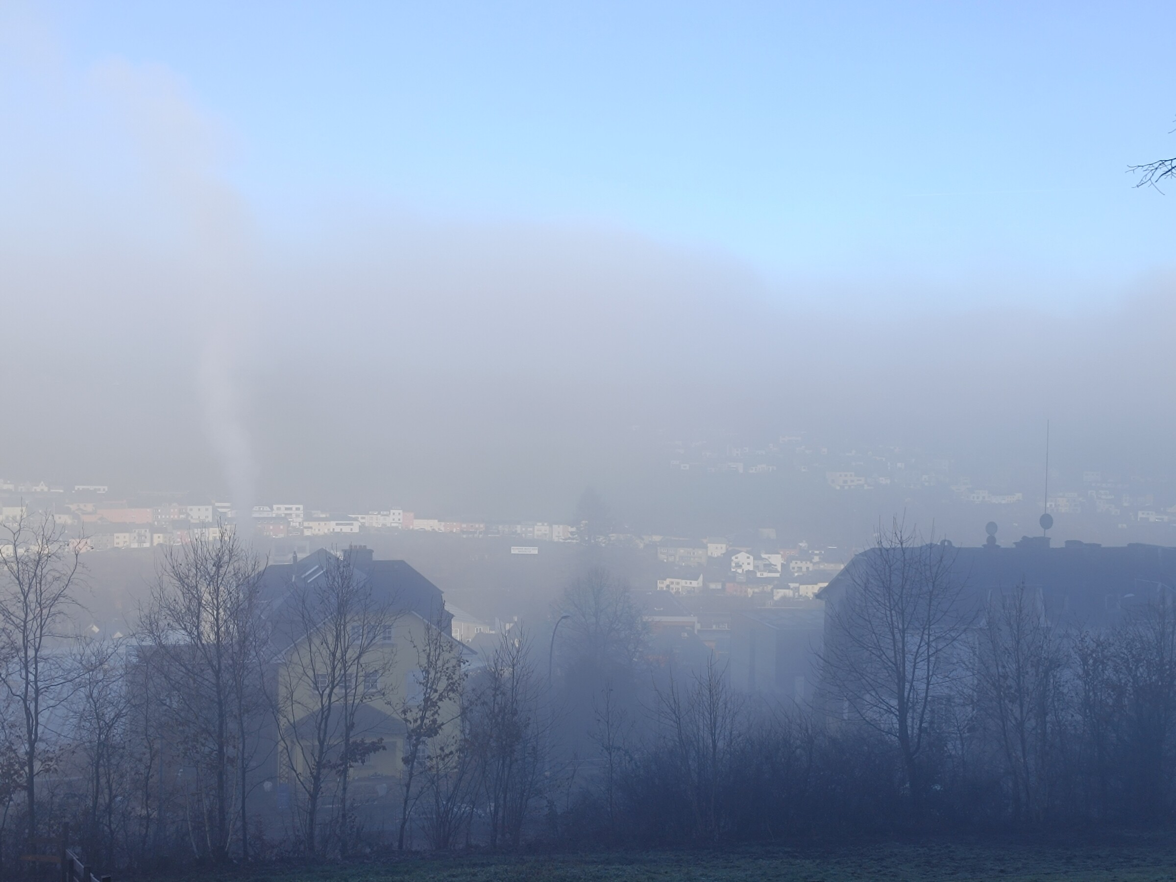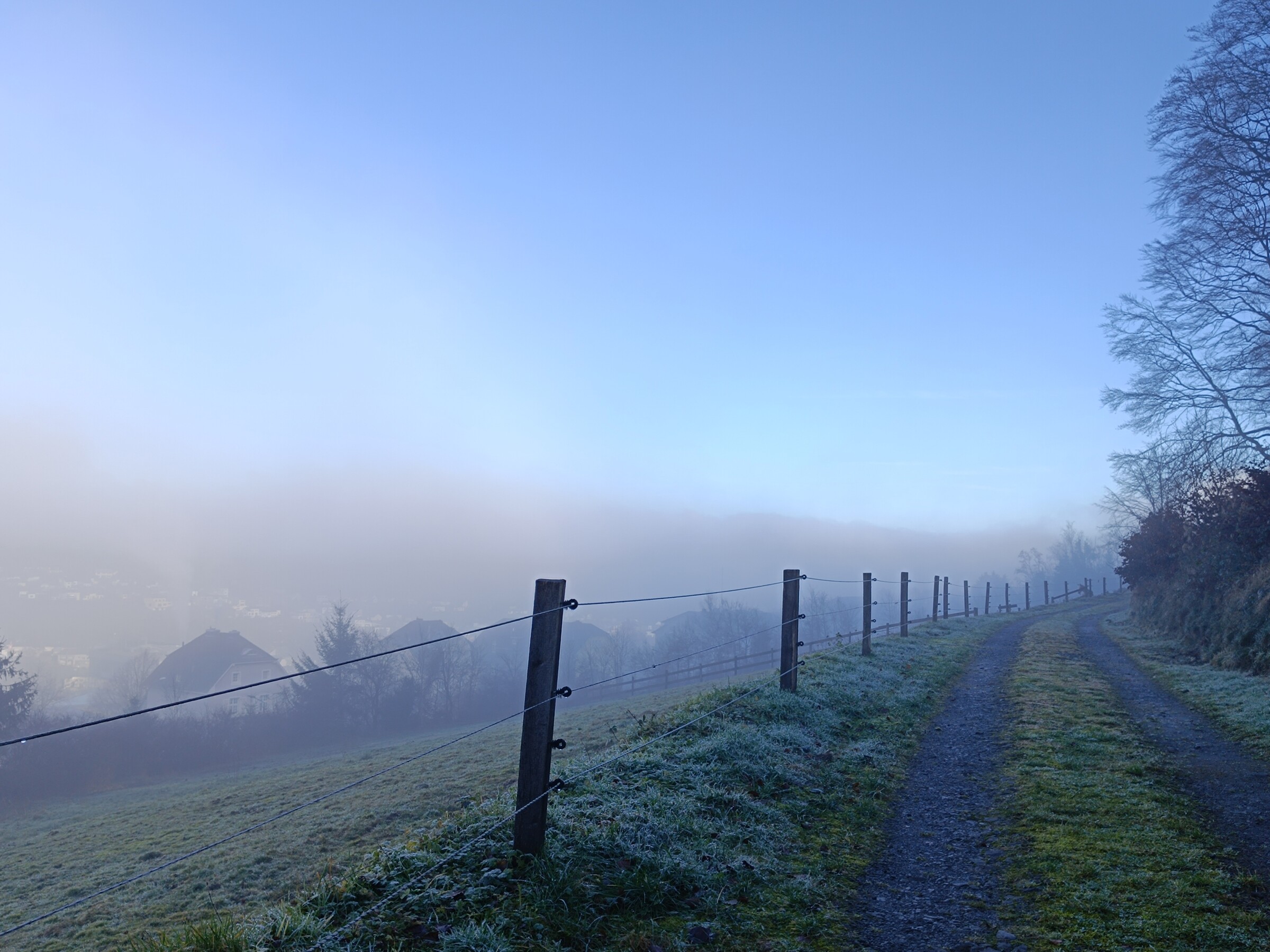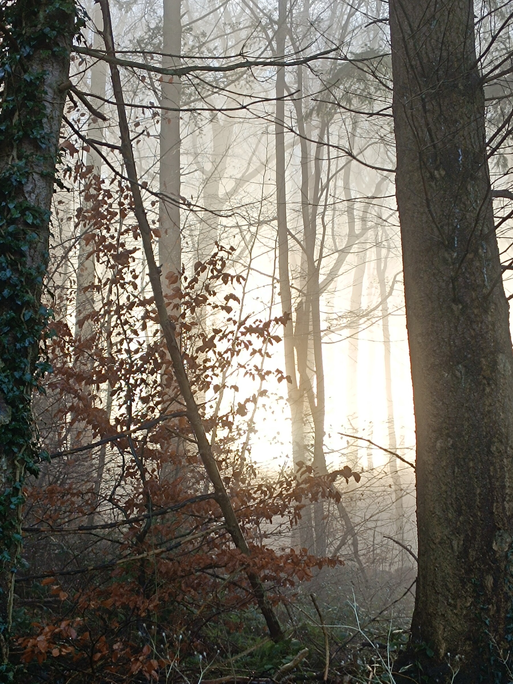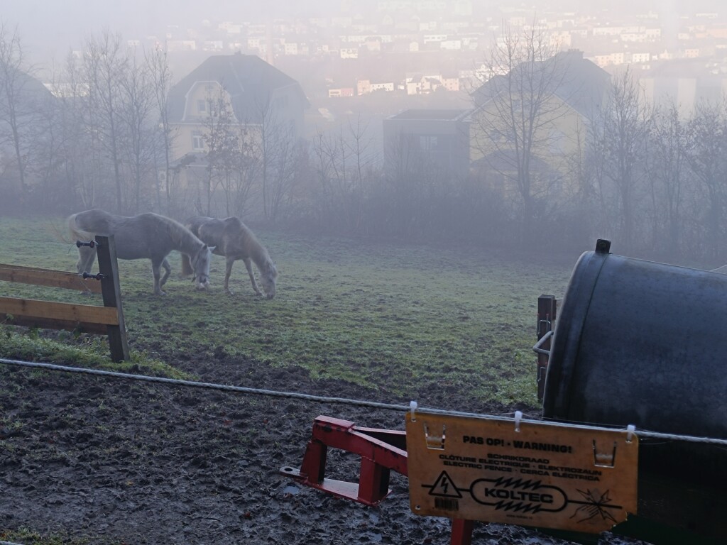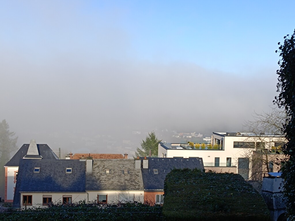 Mijn wandeling van vandaag was wat weer betreft een topper: eerst was er oplossende mist (nu geen Hochnebel meer), en omhoog gaand in het bos was er alleen nog zon. Dit leverde wat tegenlichtfoto's op, waar mijn eenvoudige telefoon weliswaar wat moeite mee heeft (trouwens ook met de mistfoto's), maar die voor een deel toch fraaie plaatjes opleverden. Deze post ik in twee delen: hier eerst de mistfoto's.