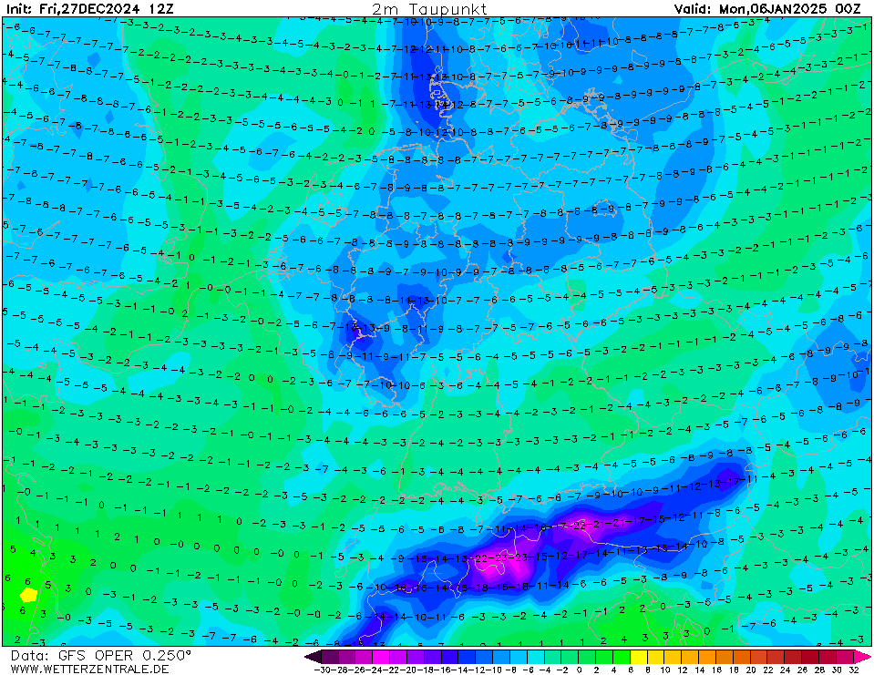 GFS 12z Lijkt grotendeels droog te zijn tijdens de jaarwisseling