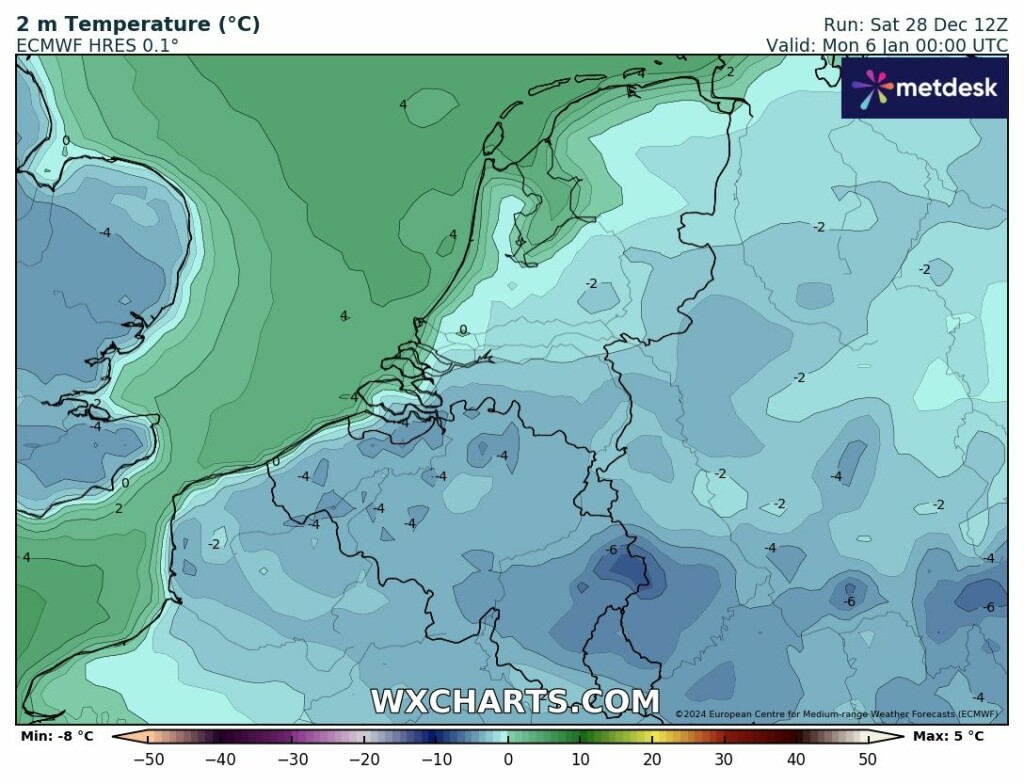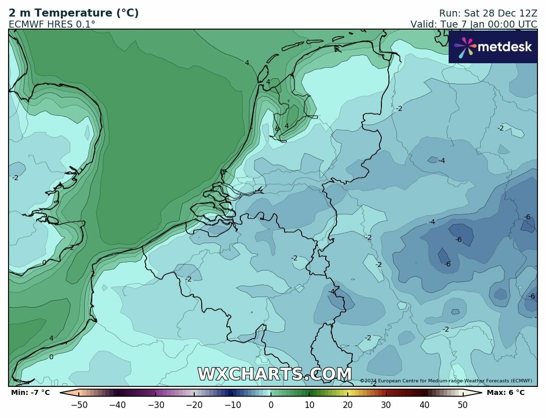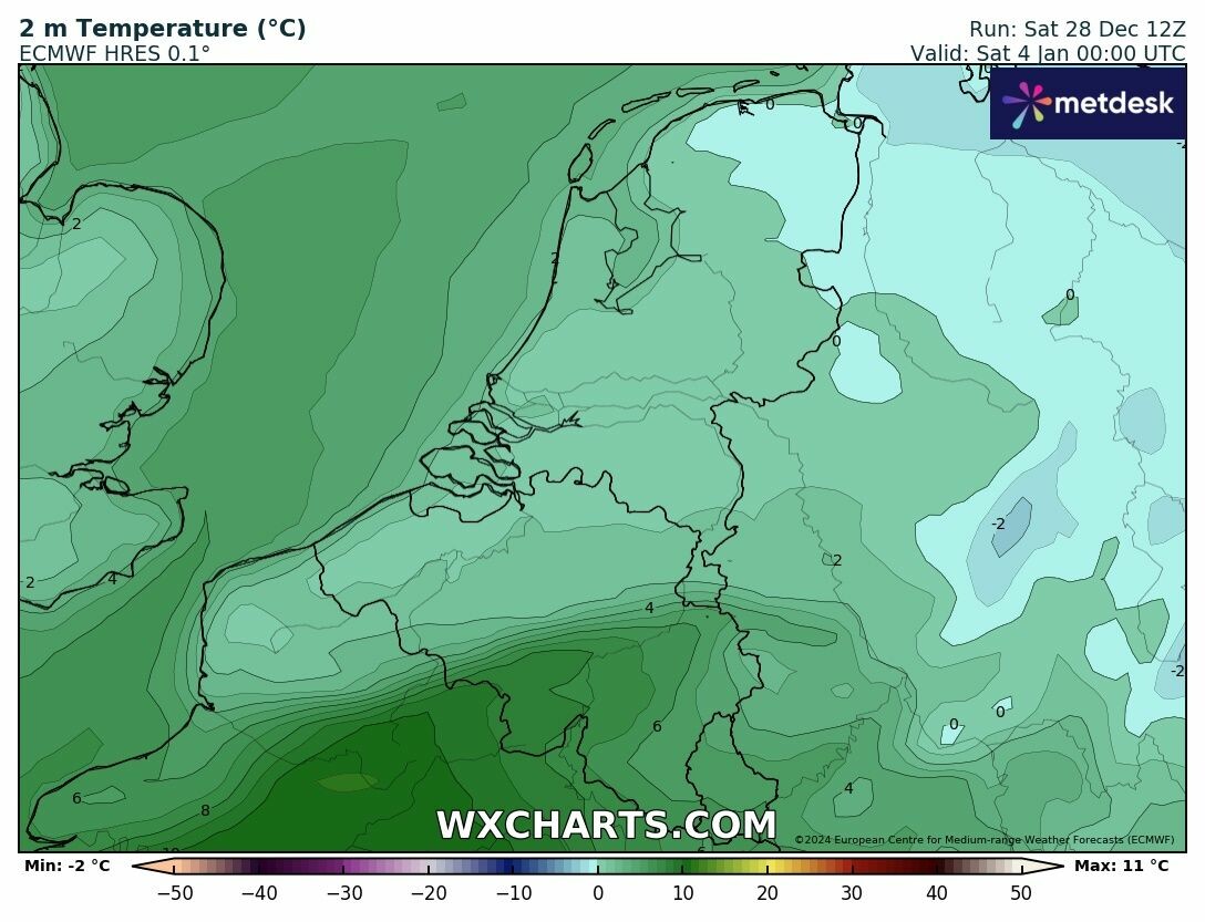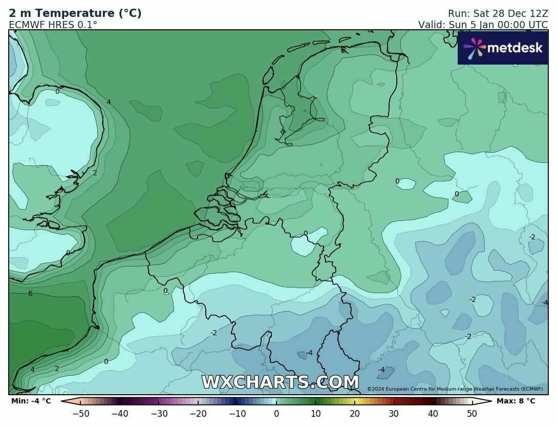 Vanaf dag 8 gaat de temperatuur in de nachten duidelijk onder 0
