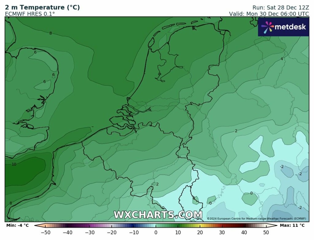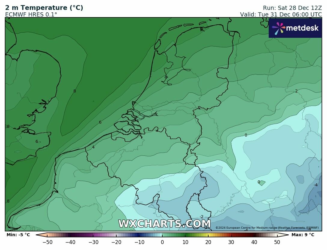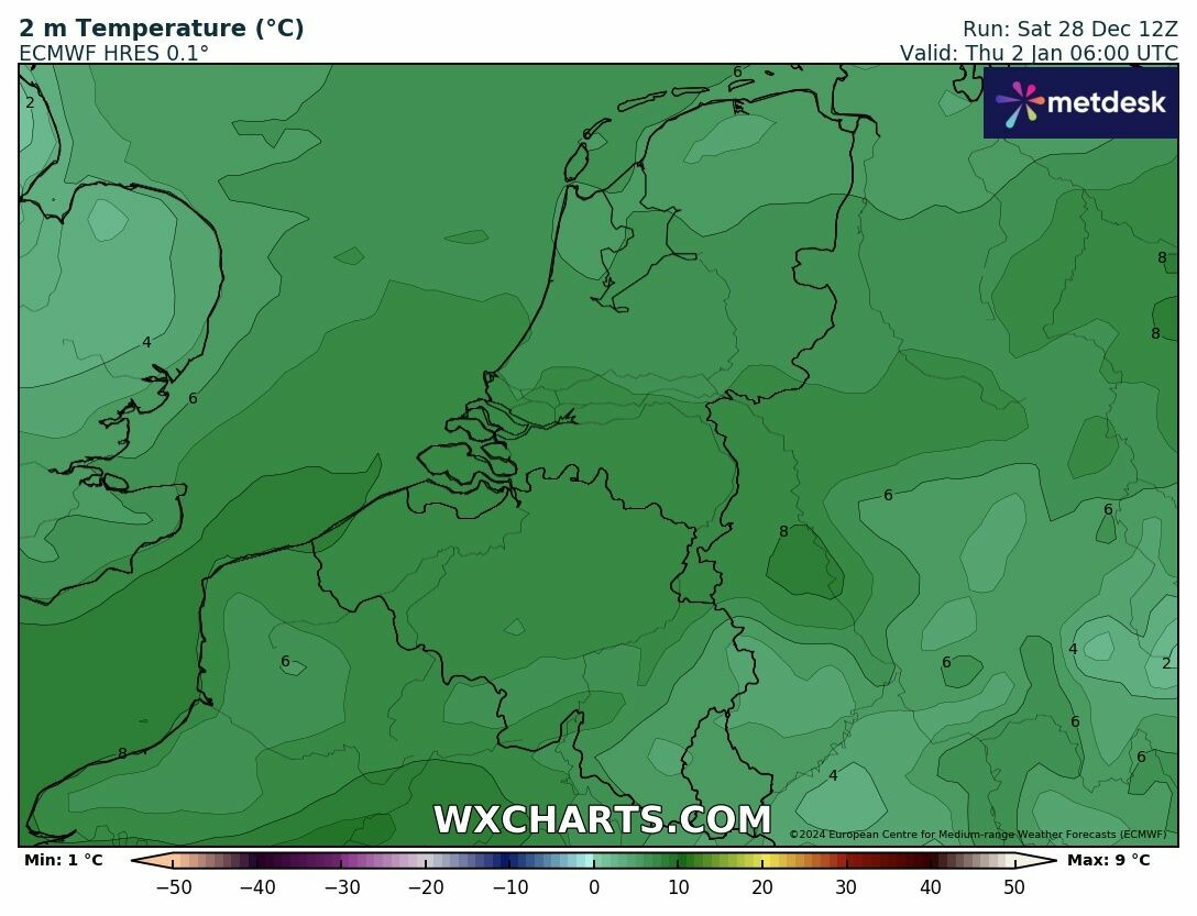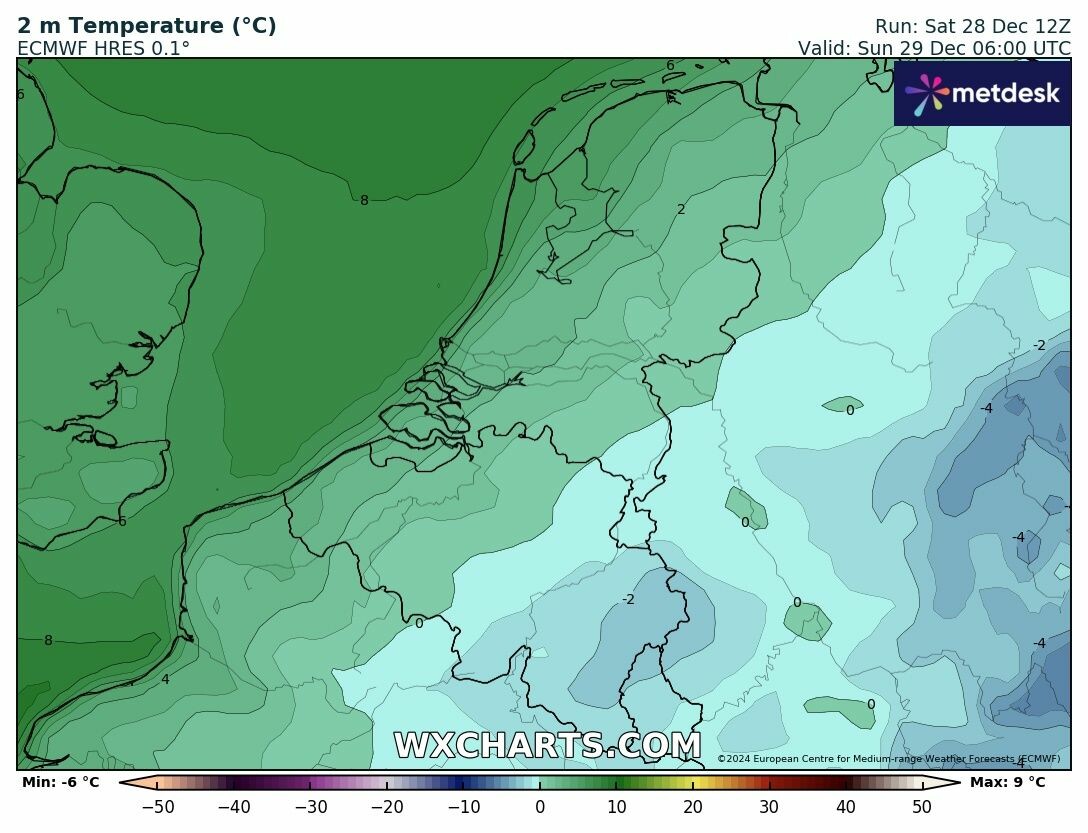 Vanaf dag 8 gaat de temperatuur in de nachten duidelijk onder 0