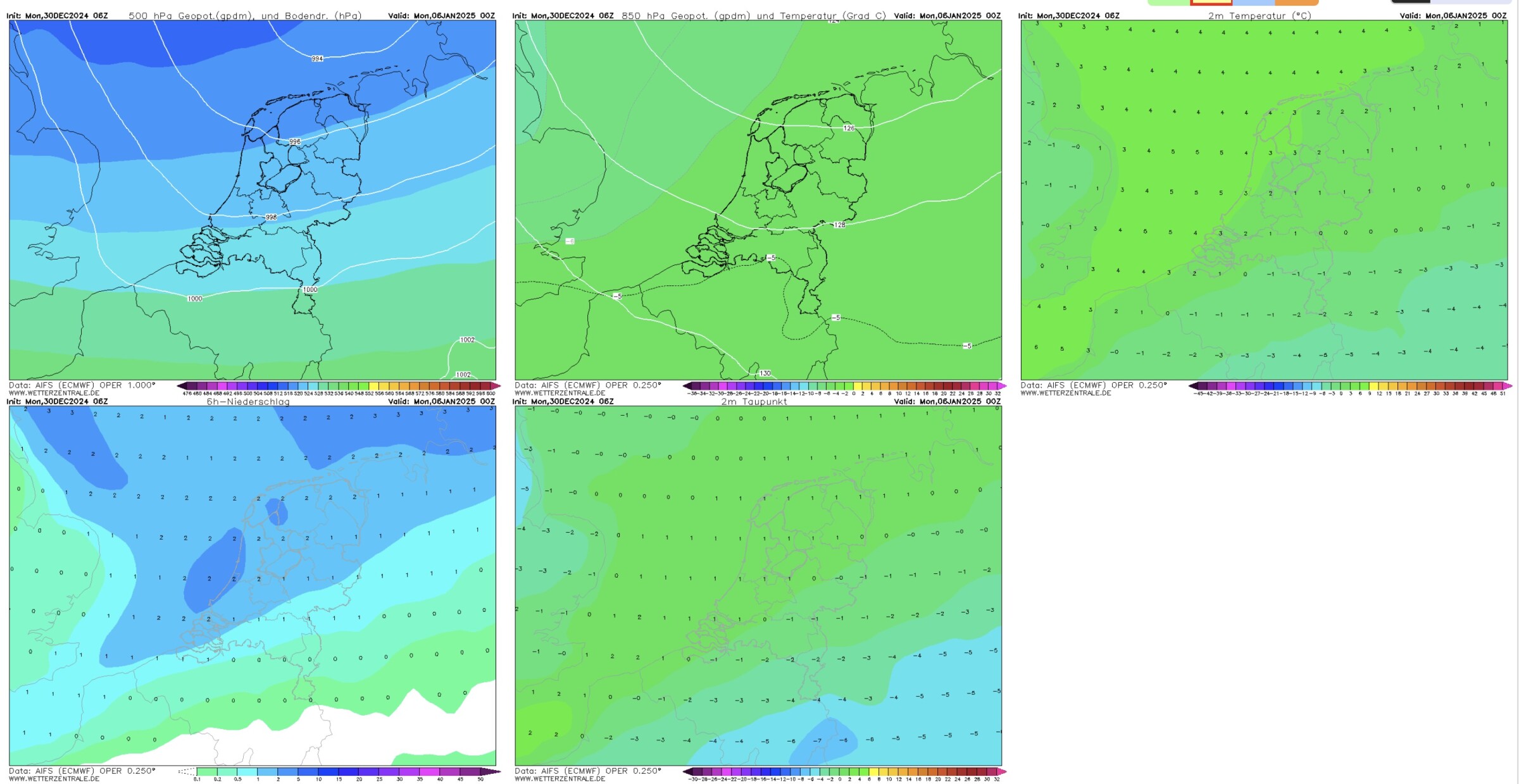 Zojuist heb ik de 06z run van AIFS even bekeken, leuke run, kansen op sneeuw zijn ook aanwezig. Vooral het binnenland heeft de beste papieren voor sneeuwval zo lijkt het. Langs de kust toch wel net iets boven het vriespunt bij dauwtemperaturen rond het vriespunt. In het binnenland met de neerslag een stuk frisser. Maar ik vraag mij af of de neerslagverwachting wel zo nauwkeurig is, het is veel minder fijnmazig dan b.v. een GFS of EC. Misschien dat Jelmer daar iets over kan zeggen?