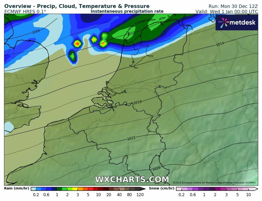 Jaarwisseling; droog in het midden en zuiden, nat in het noorden