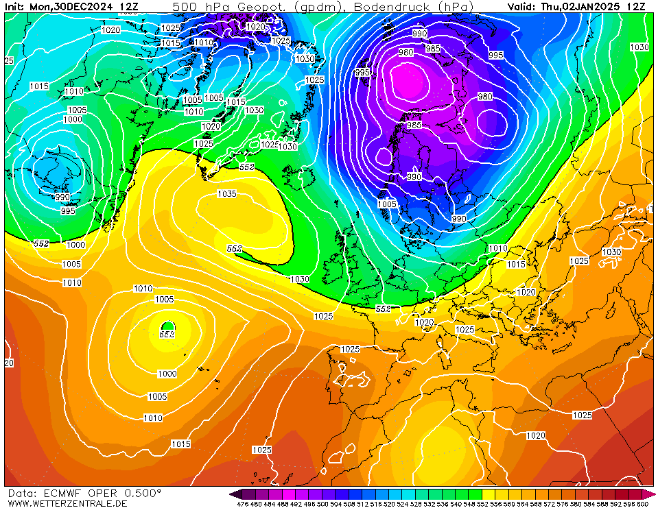 De hogedrukgordel boven het vasteland van Europa trekt zich al een heel eind verder terug hier naar het zuiden dan in de 00z en de 06z runs van vandaag. De lagedrukgordel vanuit het noorden krijgt in deze run al veel meer kans om uit te zakken naar het zuiden en de Groenlandblokkade doet een goede poging om beter uit de verf te komen! Hoopvolle ontwikkeling dit!