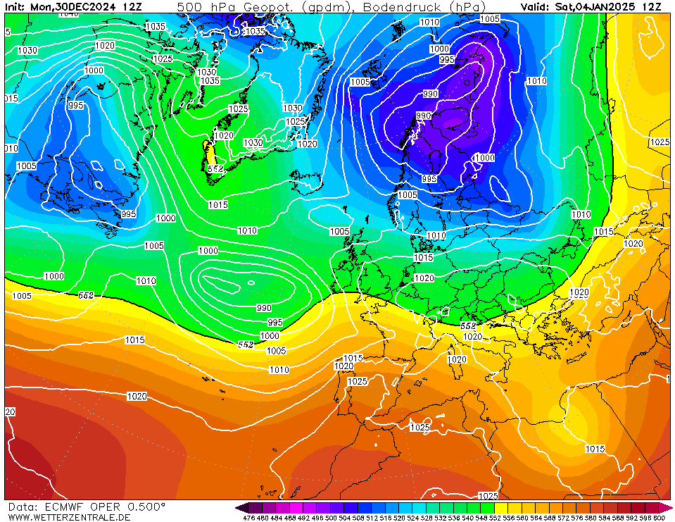 Nee, dit is hem helaas ook nog niet. EC rekent met het Azorenlaag wat iets te noordelijk komt. Dat is een enorm verschil met GFS. Het probleem in deze EC-run is vooral dat er een aparte hogedrukkern vanaf het hogedrukgebied bij Groenland zich afsplitst en zich geroepen voelt om naar het vasteland van Europa te trekken. Een detail wat in de komende runs bij EC weggepoetst zal moeten worden om dit wat te laten worden.