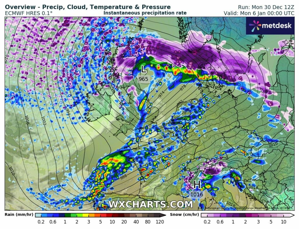 4 januari nog steeds aanvoer van winterse buien.   ( 719)