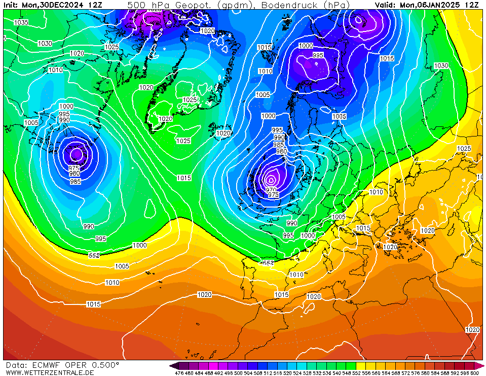 Hmm... wat moet ik hiervan denken. Dat het verre van hopeloos is. Het lagedrukgebied diept flink uit en gaat in deze run de Noordzee op. Het zou beter zijn geweest als dit lagedrukgebied zou duiken. Maar het andere lagedrukgebied bij New Foundland blijft keurig op zijn plek en er lijkt een nieuwe poging gedaan te worden tot een Groenlandblokkade te vormen. De straalstroom ligt hier behoorlijk zuidelijk dus dat zou ik als kansrijk bestempelen.