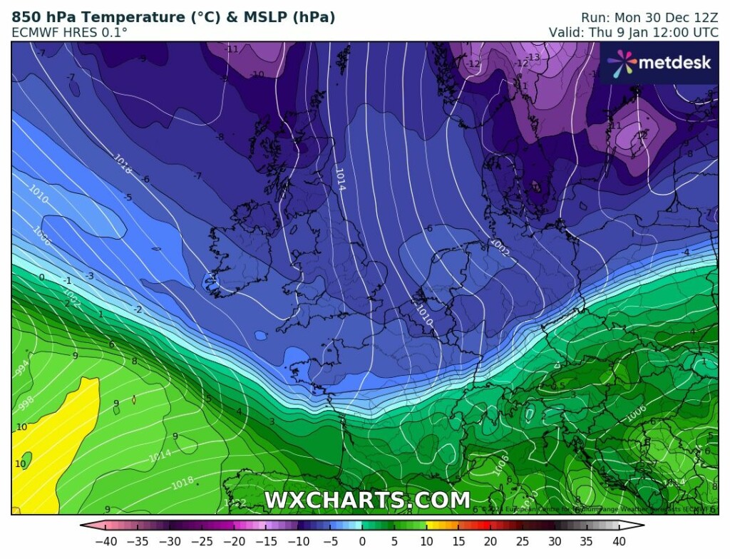 Koufront op nieuwjaarsdag, daarna polaire lucht met buien.   ( 930)