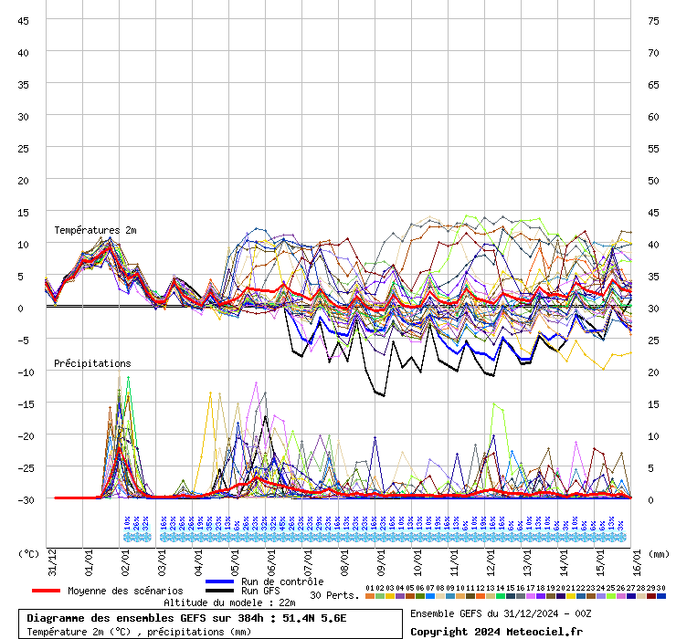 Duidelijk te zien de forse sneeuwlaag die blijft liggen. Bifurcatie! Het wordt of vrij zacht of (zeer) koud. Afhankelijk van opklaringen etc etc. Gfs ook iets meer zachtere lijntjes.