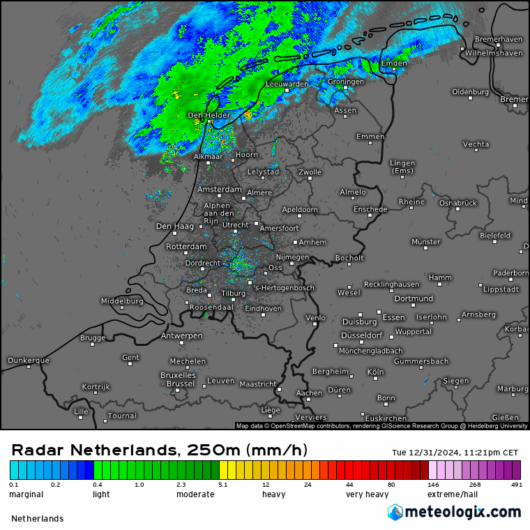 Geen idee of het de juiste radar is, maar je ziet wel de reflectie waar Bas het over heeft. Maar in België zie je dit inderdaad niet, hoewel het dezelfde radar is. Mogelijks te maken met de afstand tot de radar zelf?