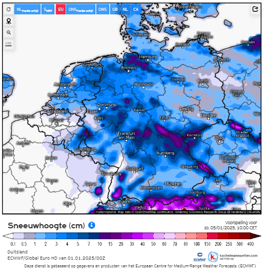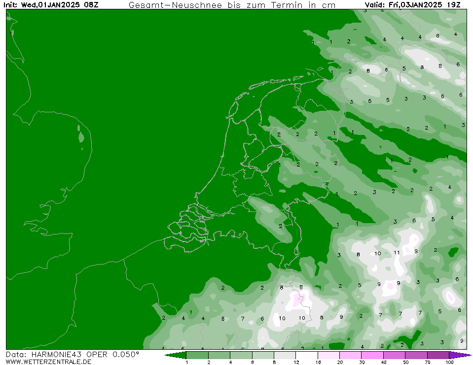 Een grote kans op een aanzienlijke hoeveelheid sneeuw wat overgaat in regen door het temperatuursverloop. De exacte accumulatie is nog onzeker. Hoe snel het lagedrukgebied en welke koers het gaat volgen is nog wat onzeker, maar dat de zachte lucht tot ver in Nederland doordringt is groot. Het zal dus weer wegsmelten, maar we kunnen waarschijnlijk wel enkele uren sneeuwpoppen maken