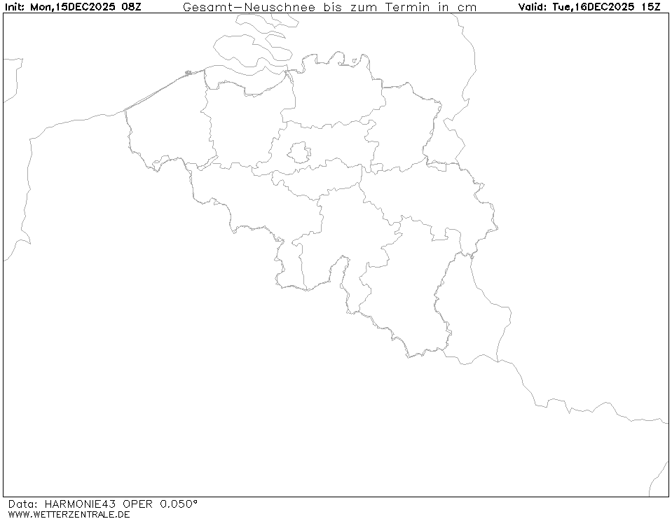 De neerslag van vandaag kan in de Limburgse heuvels vannacht en in de vroege ochtend naar donderdag als natte sneeuw vallen. Omdat de natteboltemperatuur te hoog is, blijft de sneeuw wellicht pas liggen boven de 250-300 meter. De Ardennen krijgt een portie sneeuw