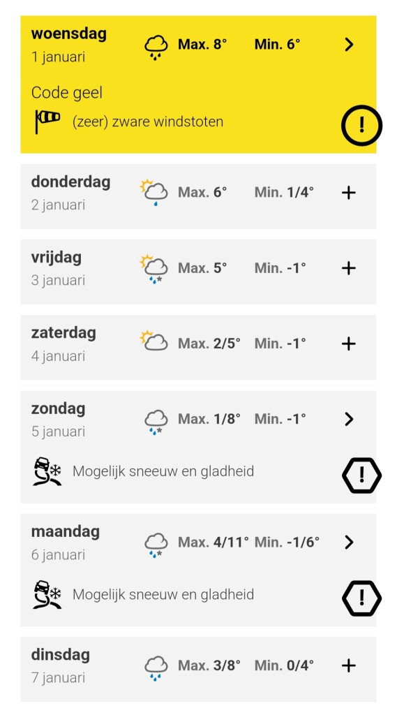 "Zondag 5 januari is er kans op sneeuw/gladheid