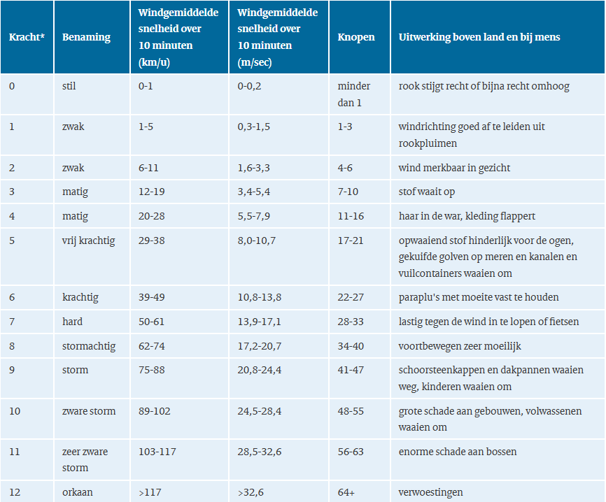 Nu iets onder de windkracht 10 (24.4 m/s)