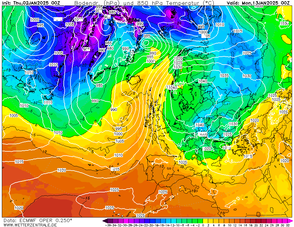 Synoptisch gezien zijn er behoorlijke overeenkomsten met een zeer forse warmteopstoot op de oceaan dankzij een grootschalig laag en een hoog boven West-Europa. Ook GEM, AIFS en GC komen met een dergelijke configuratie. Dit kan koud of juist erg zacht eindigen. We hoeven de 2e decade van januari zeker nog niet af te schrijven.