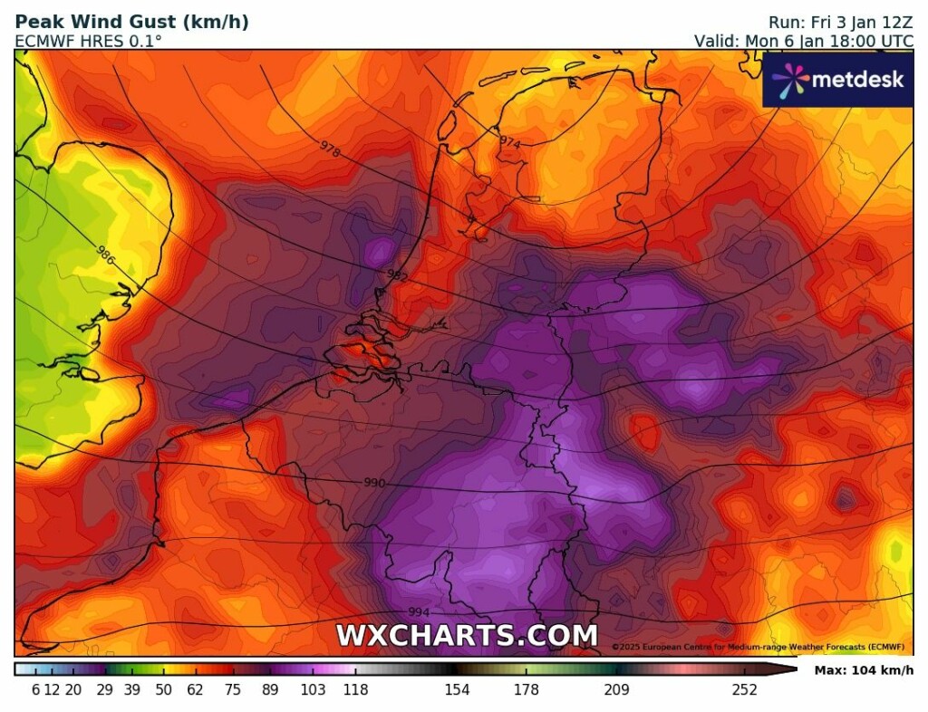 Dat hoog wordt steeds zuidelijker geprojecteerd.