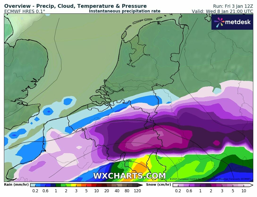 Re: +129h: Sneeuwzone zit 150 km noordelijker t.o.v. 00Z