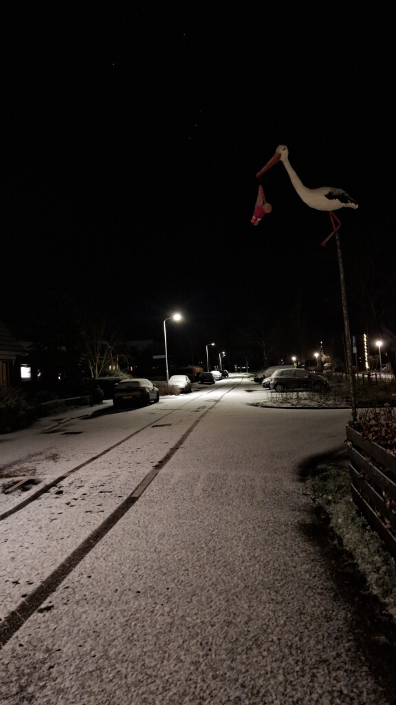 Vanavond lekkere sneeuwbui gehad en het blijft de hele avond liggen. Ook vallende ster gezien vanavond.