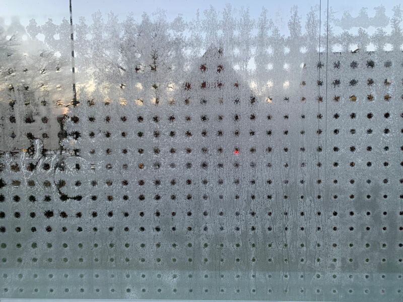 het patroon van de glasbrugjes die de warmte geleiden is goed zichtbaar. Plaatje van internet.