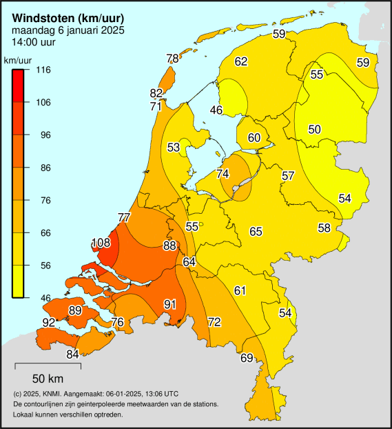 klopt, tussen 13u en 14u hevigste rukwinden hier