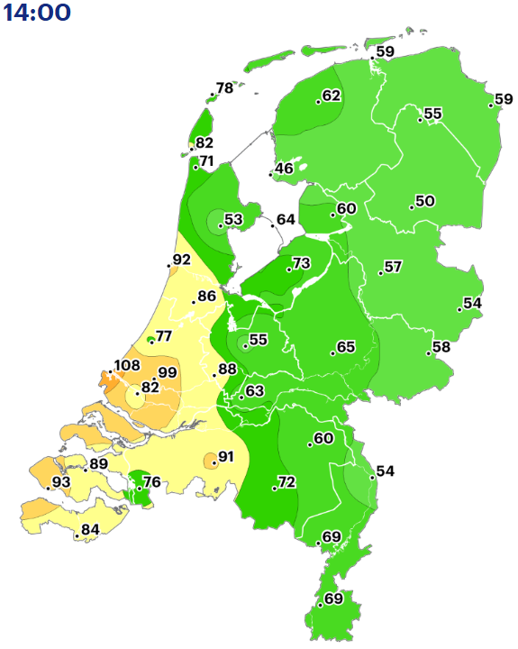 Was hier even onstuimig tijdens passage van het koufront, maar het uur daarna ook nog stevige rukwinden. Meestal is het daarna juist een stuk rustiger.