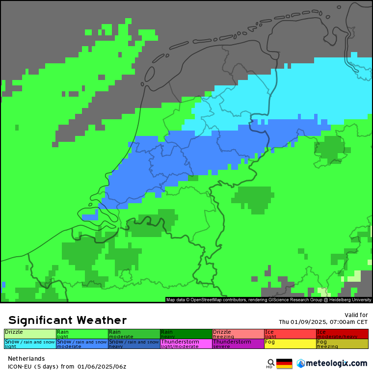 SHD 06Z, donderdagnacht sneeuwval over midden NL en westen BE.