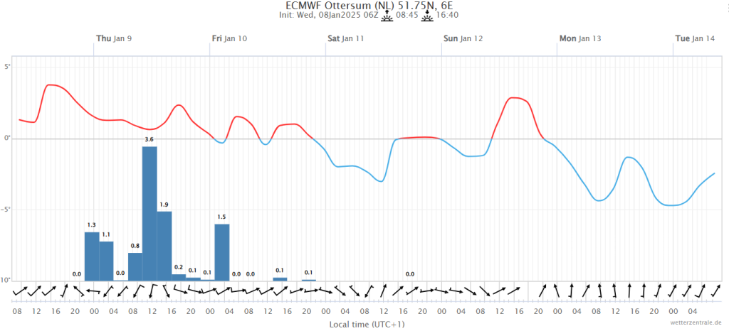 De neerslag is hier in het noorden van de provincie een stuk minder actief, maar de echt zachte lucht ontbreekt volledig.