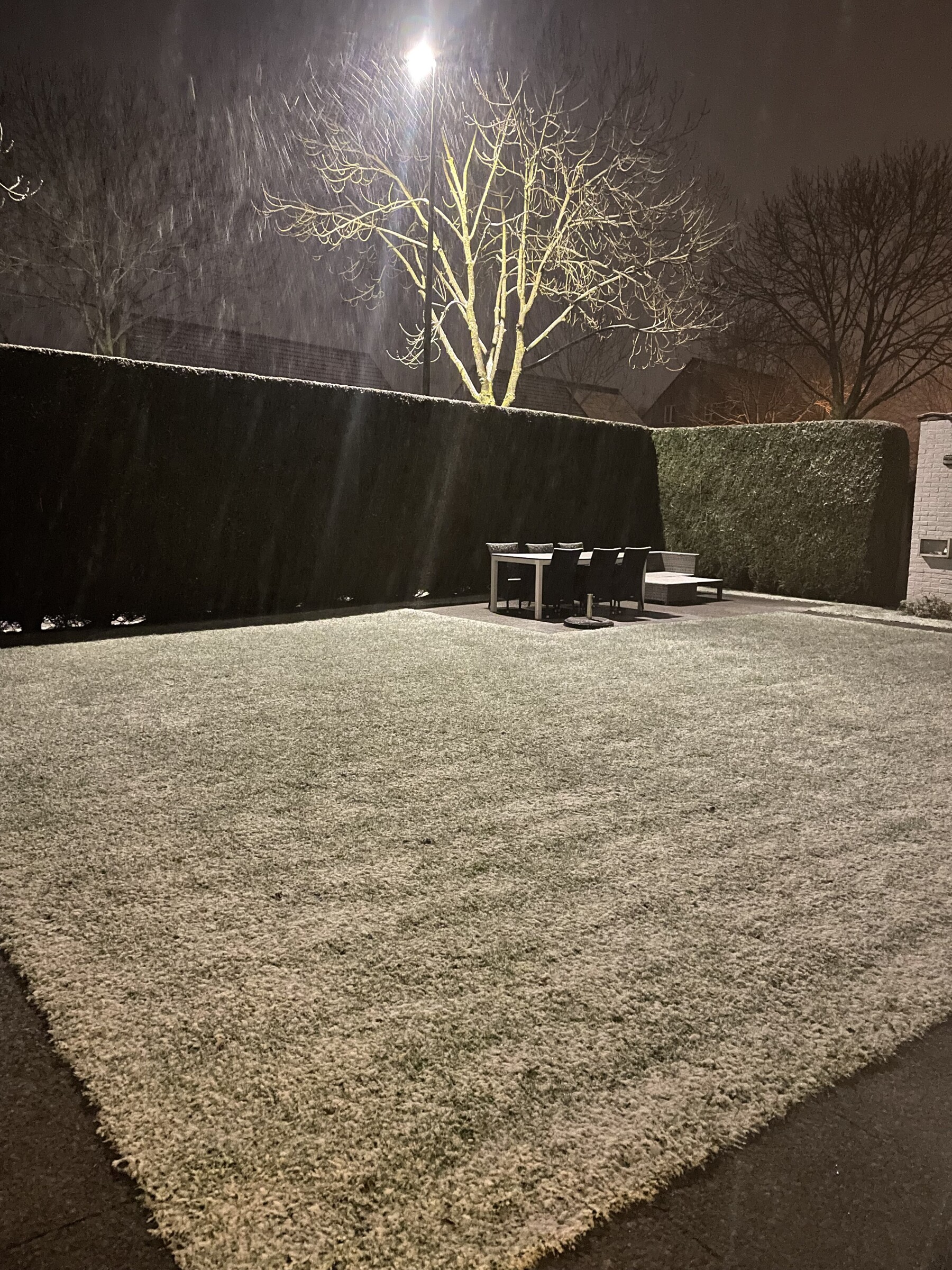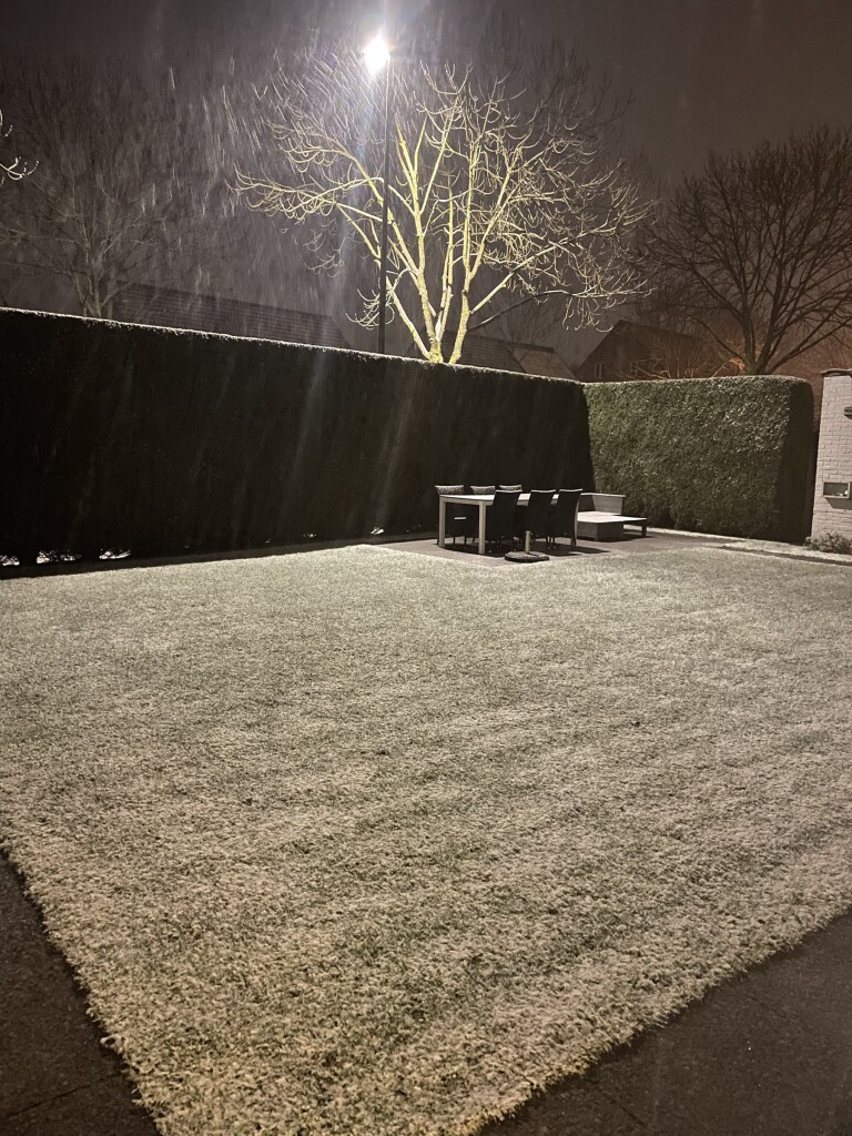 0.5° tuintafel, gazon en auto krijgen witte waas