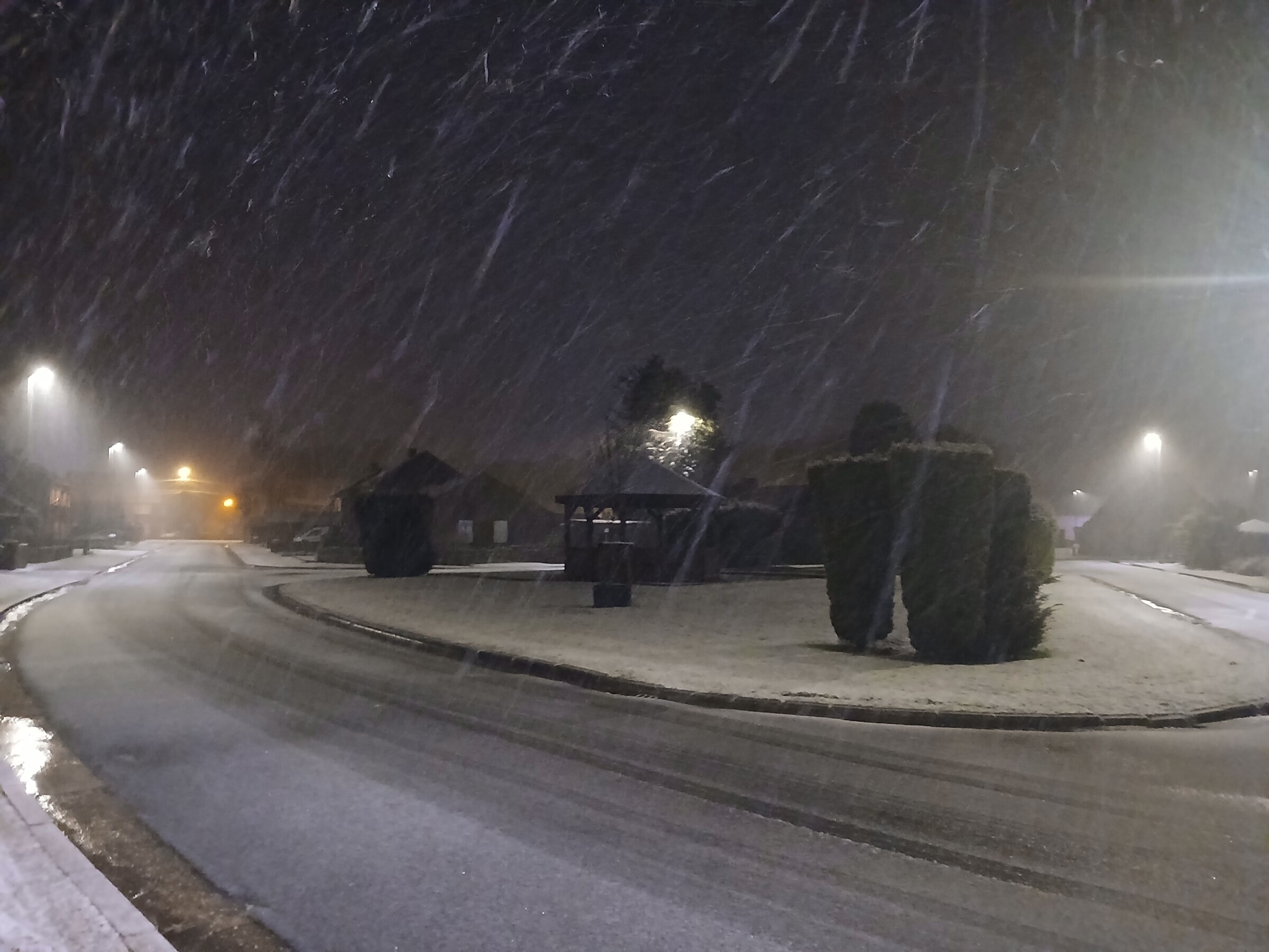 Dikke sneeuwvlokken hier, nauwelijks regen gehad.