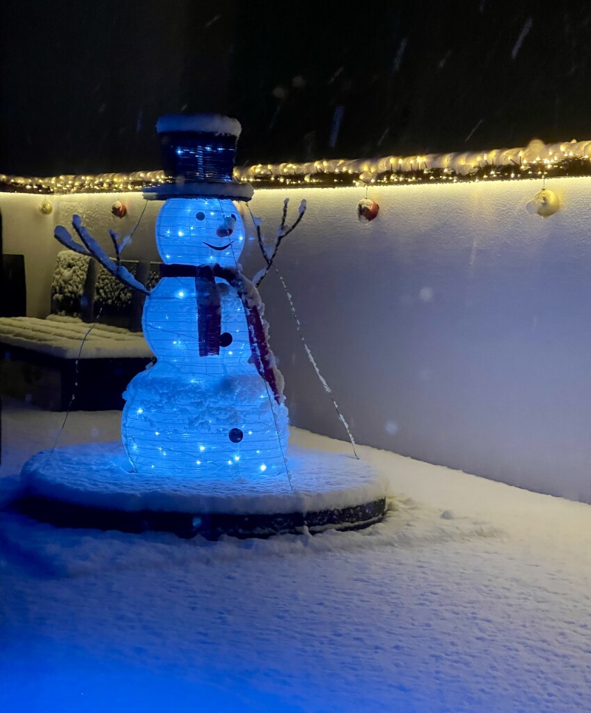 Lichte tot matige sneeuwval nu. Blijft liggen!