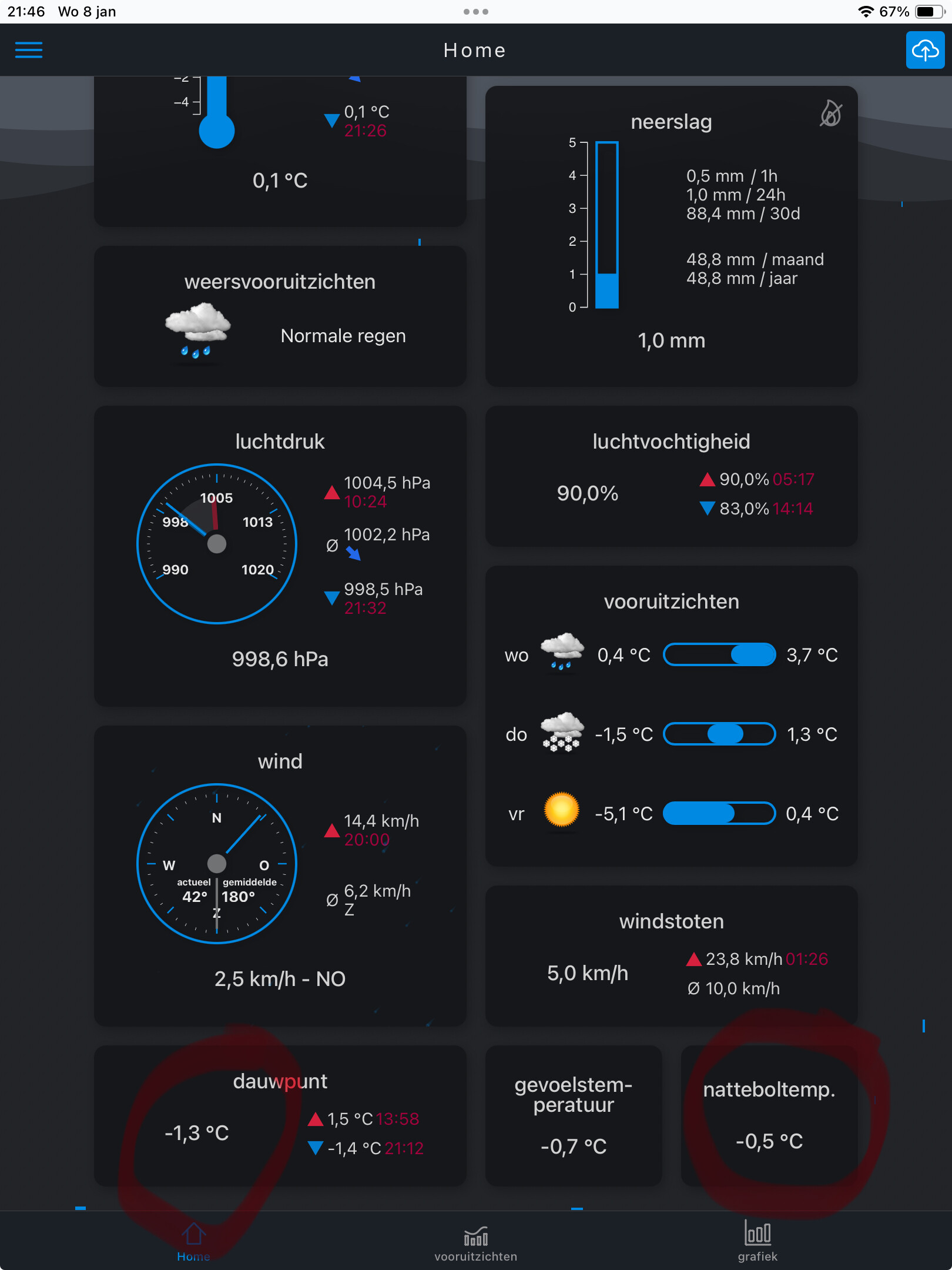 Oh in Ede en Wageningen lichte regen