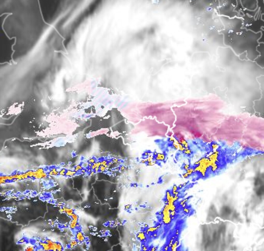 Edit: Aanvulling die buien boven West Frankrijk moeten uiteindelijk richting het noordoosten trekken met het laag mee.