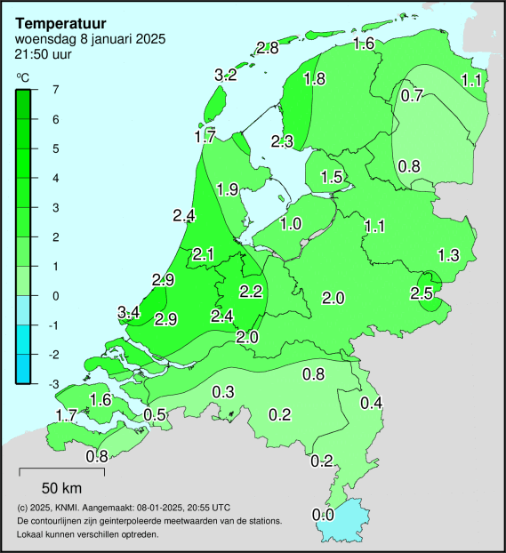 Volgens KNMI Guidance daalt de temp in de sneeuw sneller dan verwacht.
