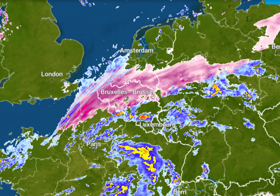 Neerslagzone zit duidelijk noordelijker dan de detailmodellen momenteel aangeven. Kan een flink pak worden hier.