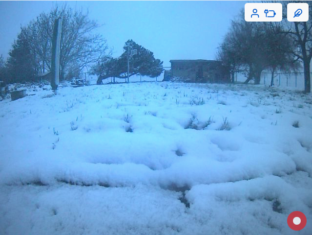 Sneeuwrest van gisteren en nu sneeuw die opnieuw aandikt . nu opnieuw matige sneeuwval. De wegen raken nu weer wat ondergesneeuwd. Beeld is vanuit mijn grasrobot net.