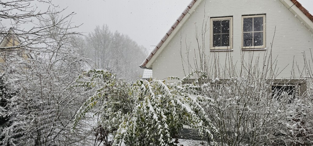 Al gaat het hier ook flink door. Nog matige sneeuw.