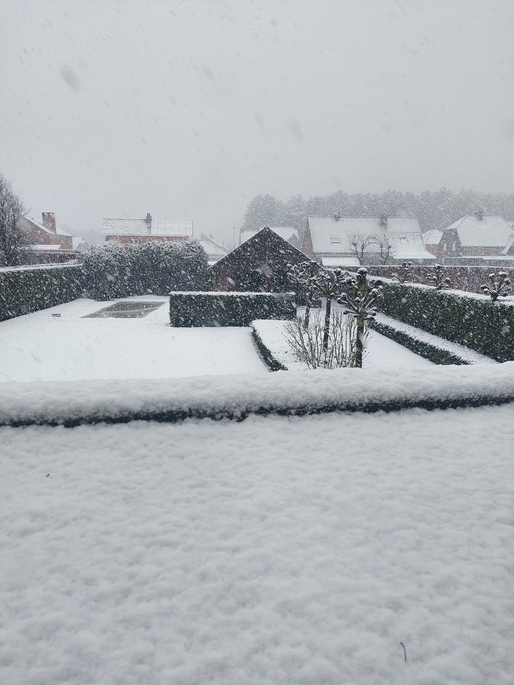 Straat (niet gestrooid) weer danig ondergesneeuwd