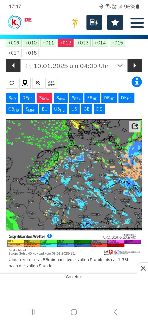Ik zie in de sneeuwgebieden al mist/lage stratus opdoemen.