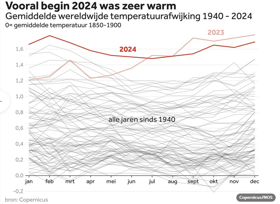 Bron: Wereld schiet door 1,5 graad; onduidelijk waarom 2024 zó warm was