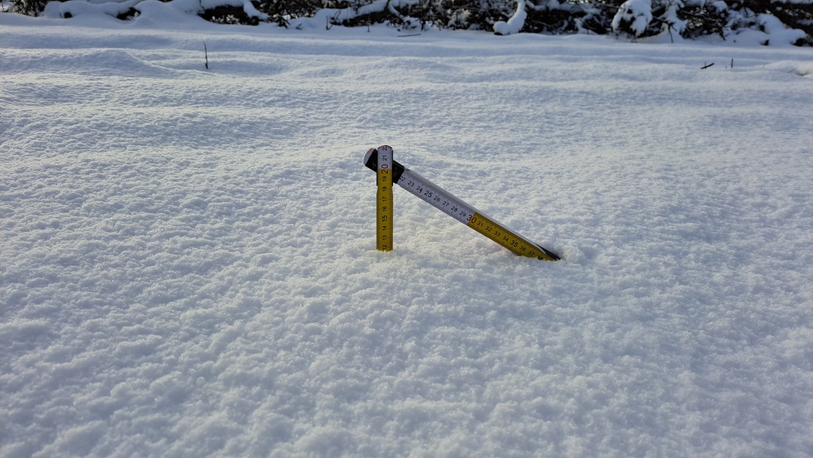Op het hoogste punt (123 m) ruim 10 cm sneeuw: