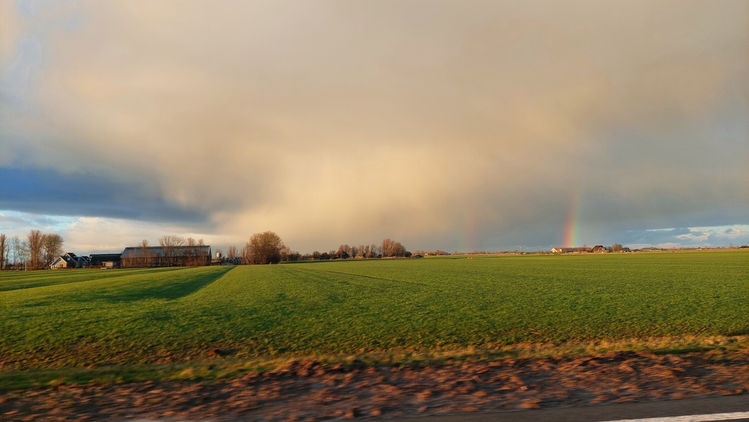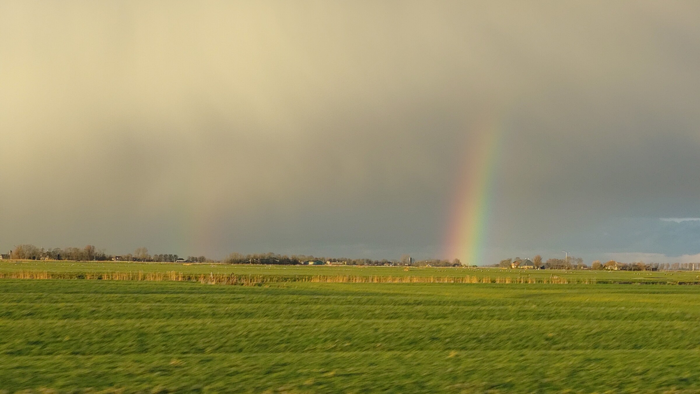 Uitzicht op een prachtige bui met hagel en een dubbele regenboog