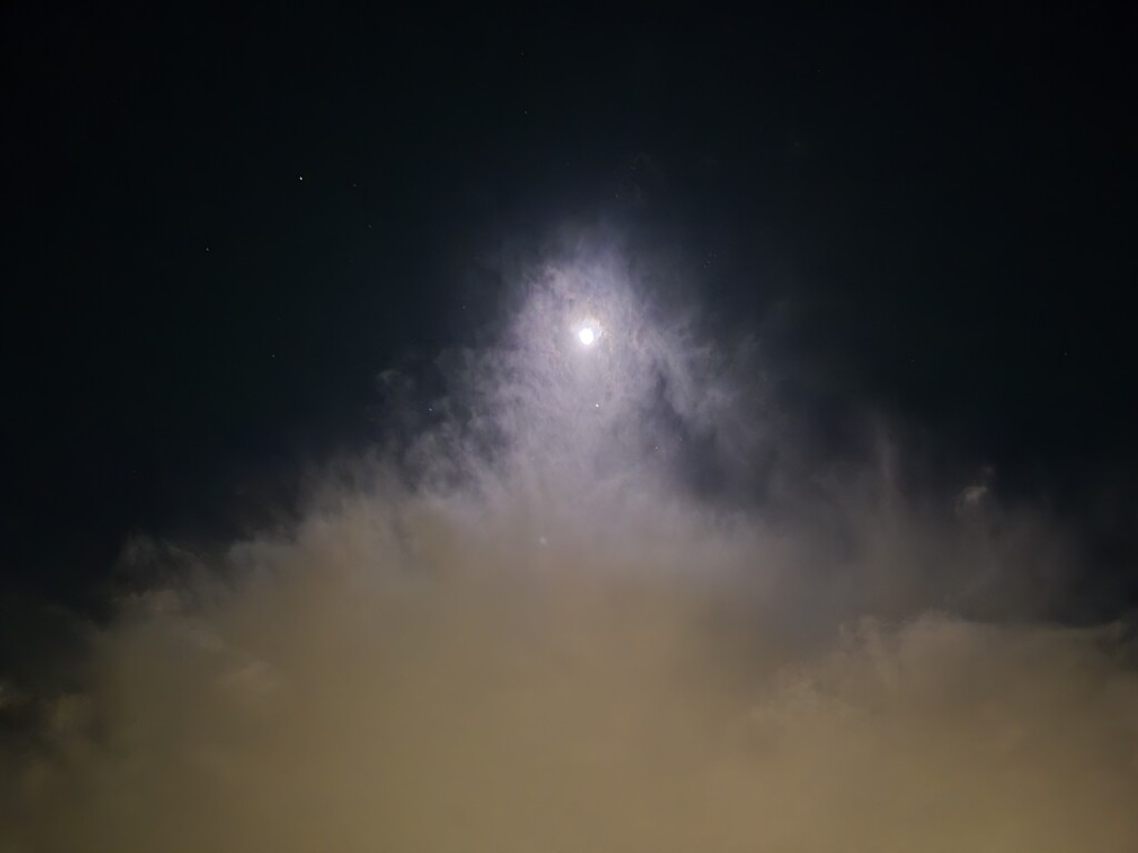 Door het maanlicht in een gitzwarte heldere sterrenhemel.