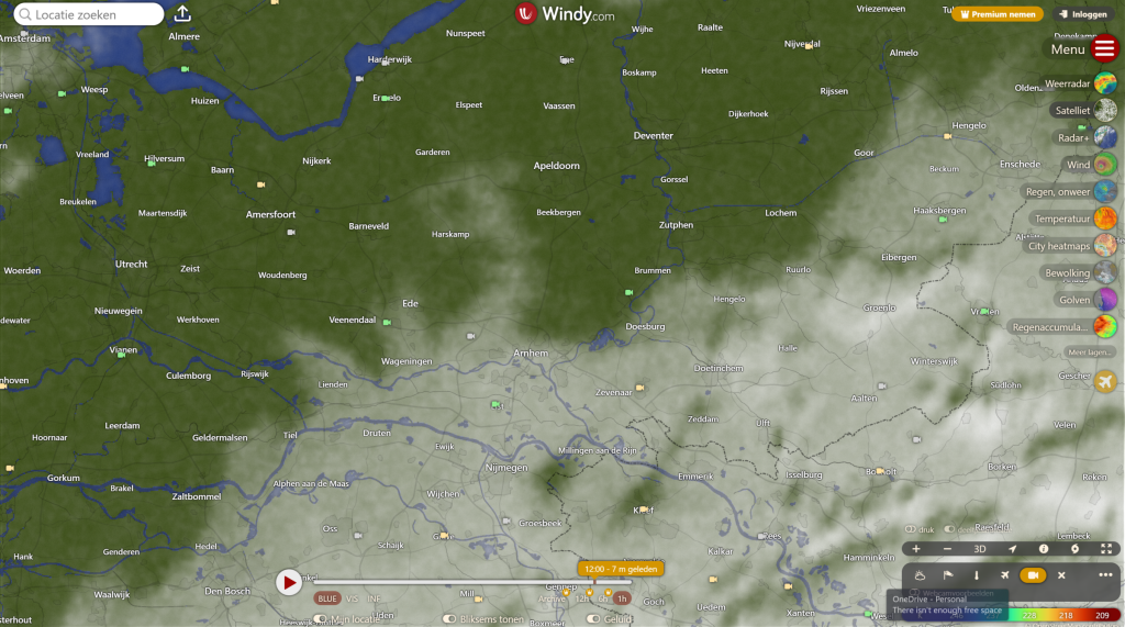 Op de satellietbeelden is goed te zien dat de hogere delen van de stuwwal wel boven de mist uitsteken. Net ten noorden van Arnhem en Velp schijnt de zon gewoon. Misschien fiets ik zo even naar de Veluwezoom om vandaag toch nog even de zon te zien...